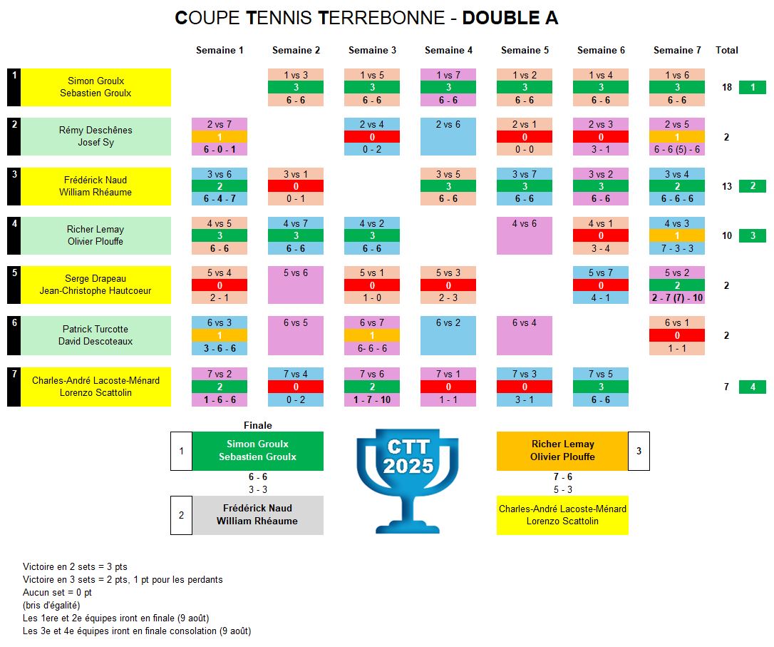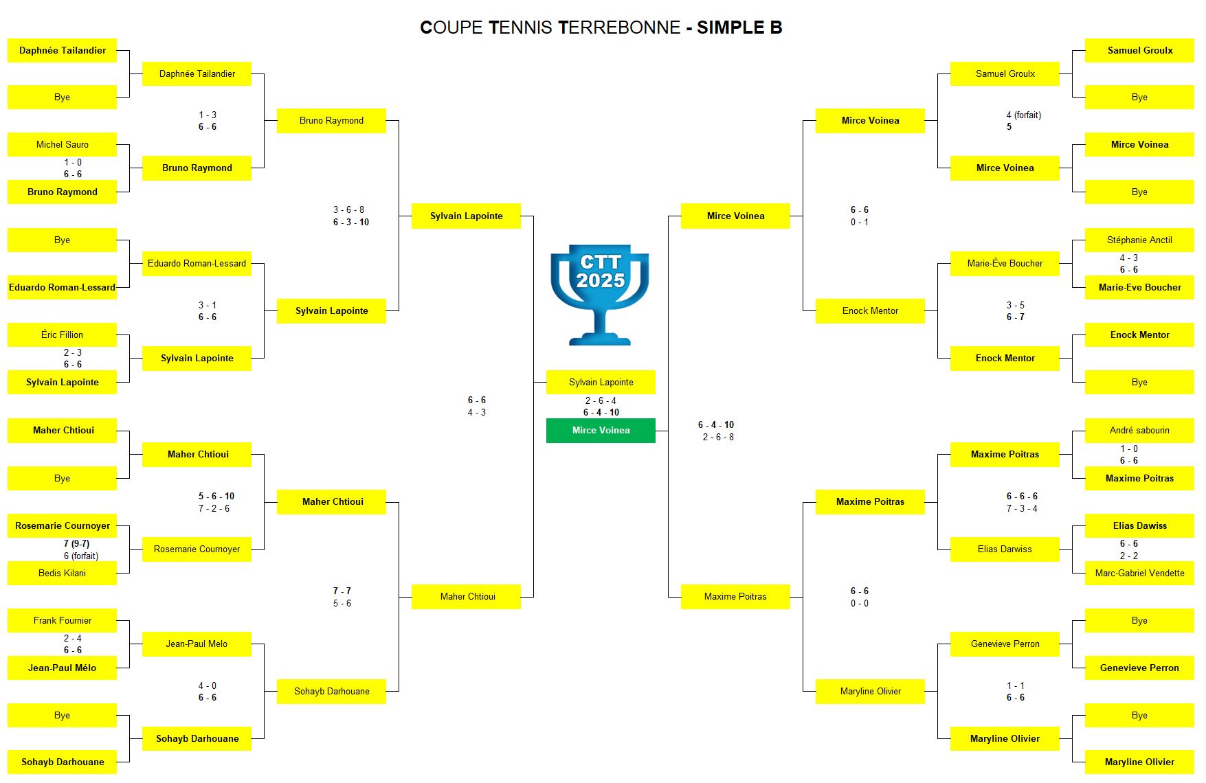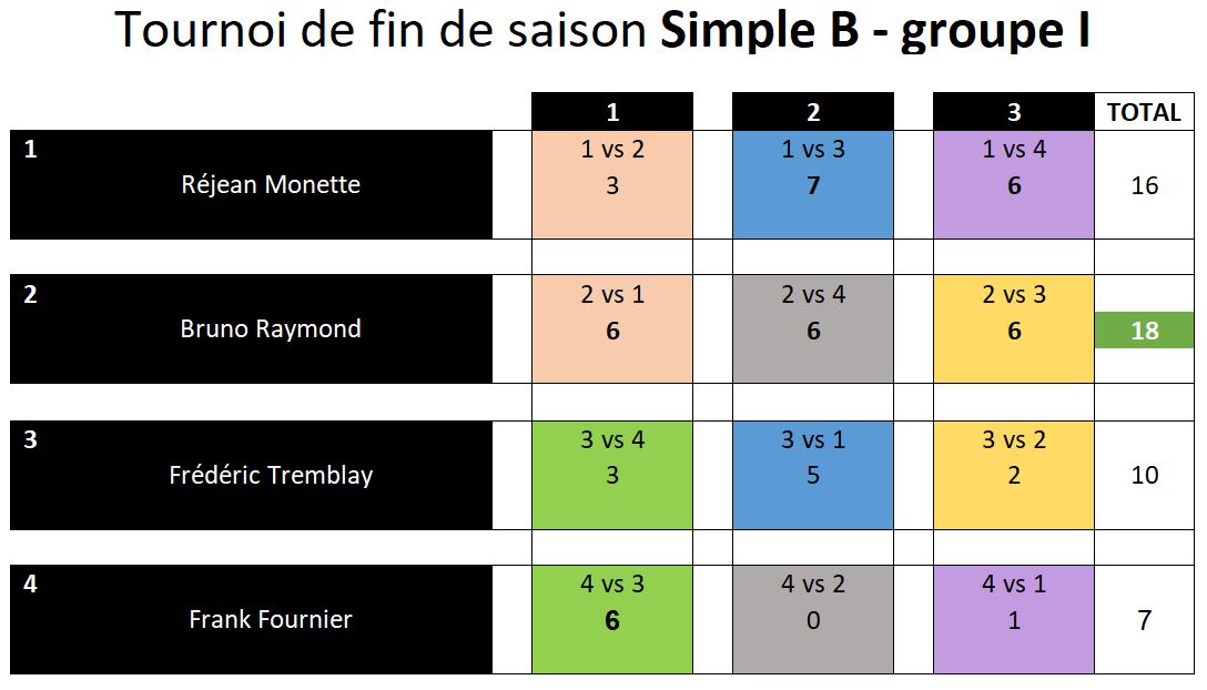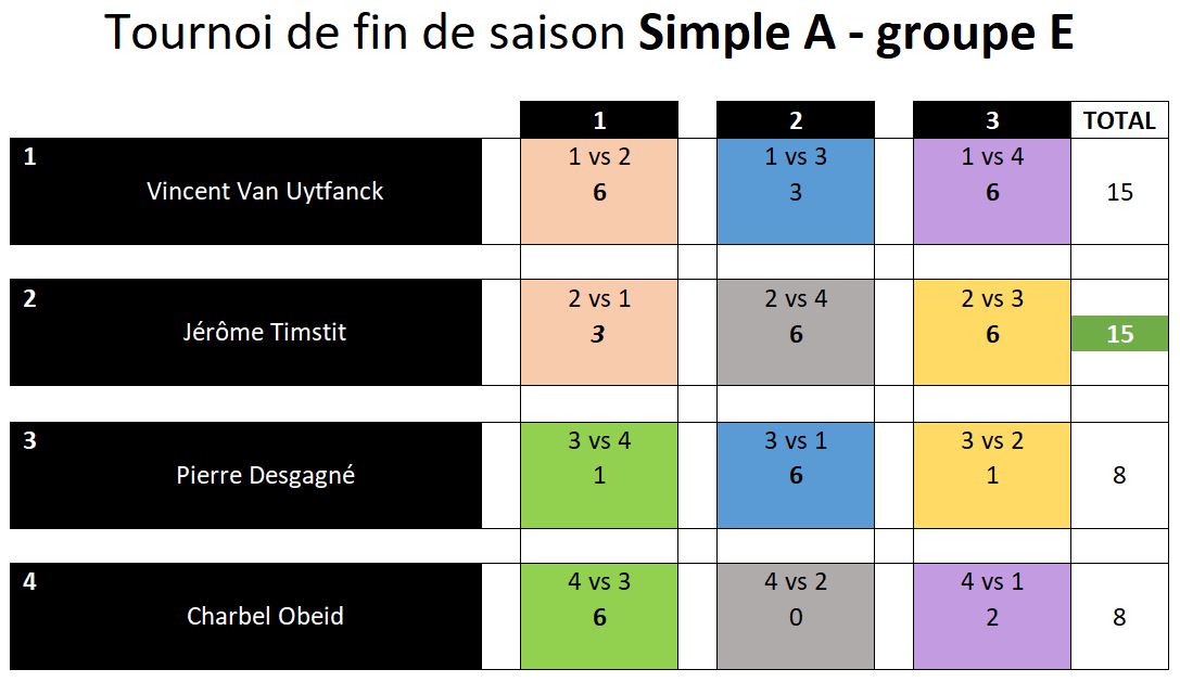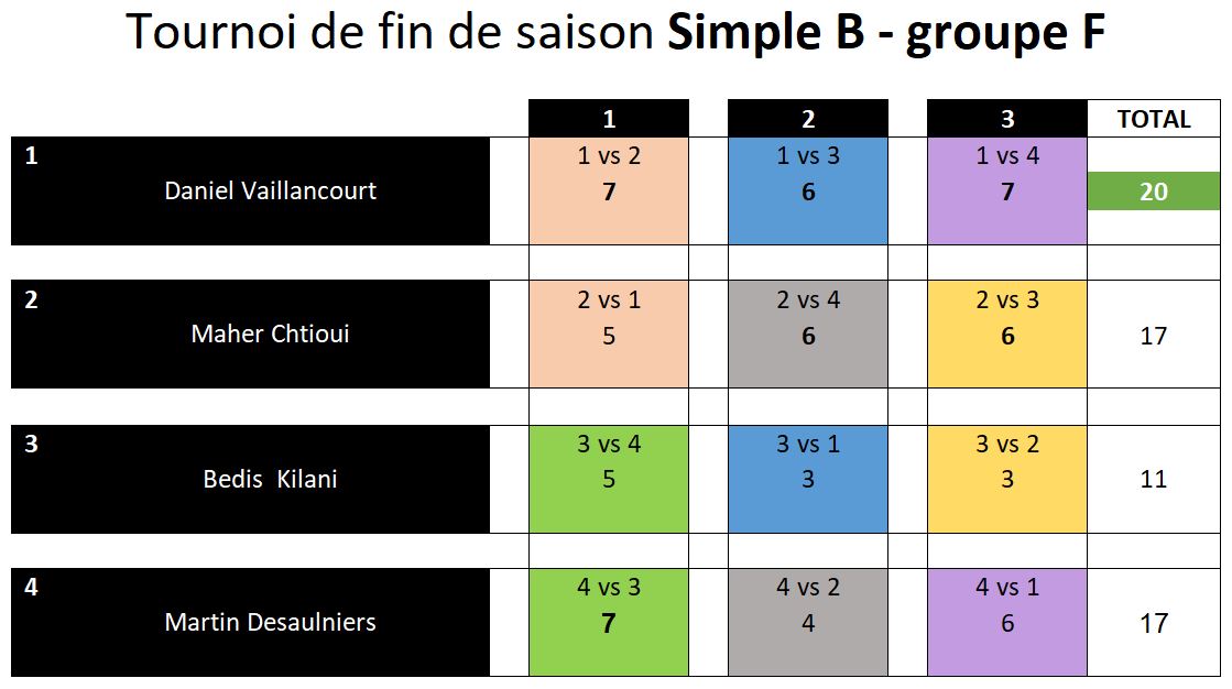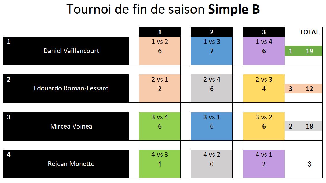 Merci à tous et toutes les participantes/participantes, ce fût un très beau tournoi grâce à vous tous. Nous aimerions remercier Jerry Jean et Marie-Ève Boucher d’avoir aidé en remplacement de dernière minute.